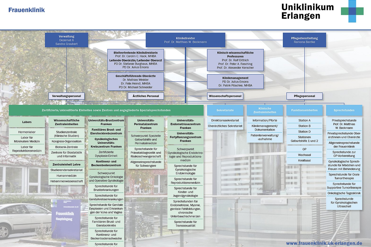 Im Onkologischen Zentrum (ONZ) sind die Strukturen für die klinische Versorgung zusammengefasst, im Comprehensive Cancer Center Erlangen-Europäische Metropolregion Nürnberg (CCC ER-EMN; CCC WERA) und im Nationalen Centrum für Tumorerkrankungen (NCT) die Strukturen für translationale Krebsforschung und klinische Studien.